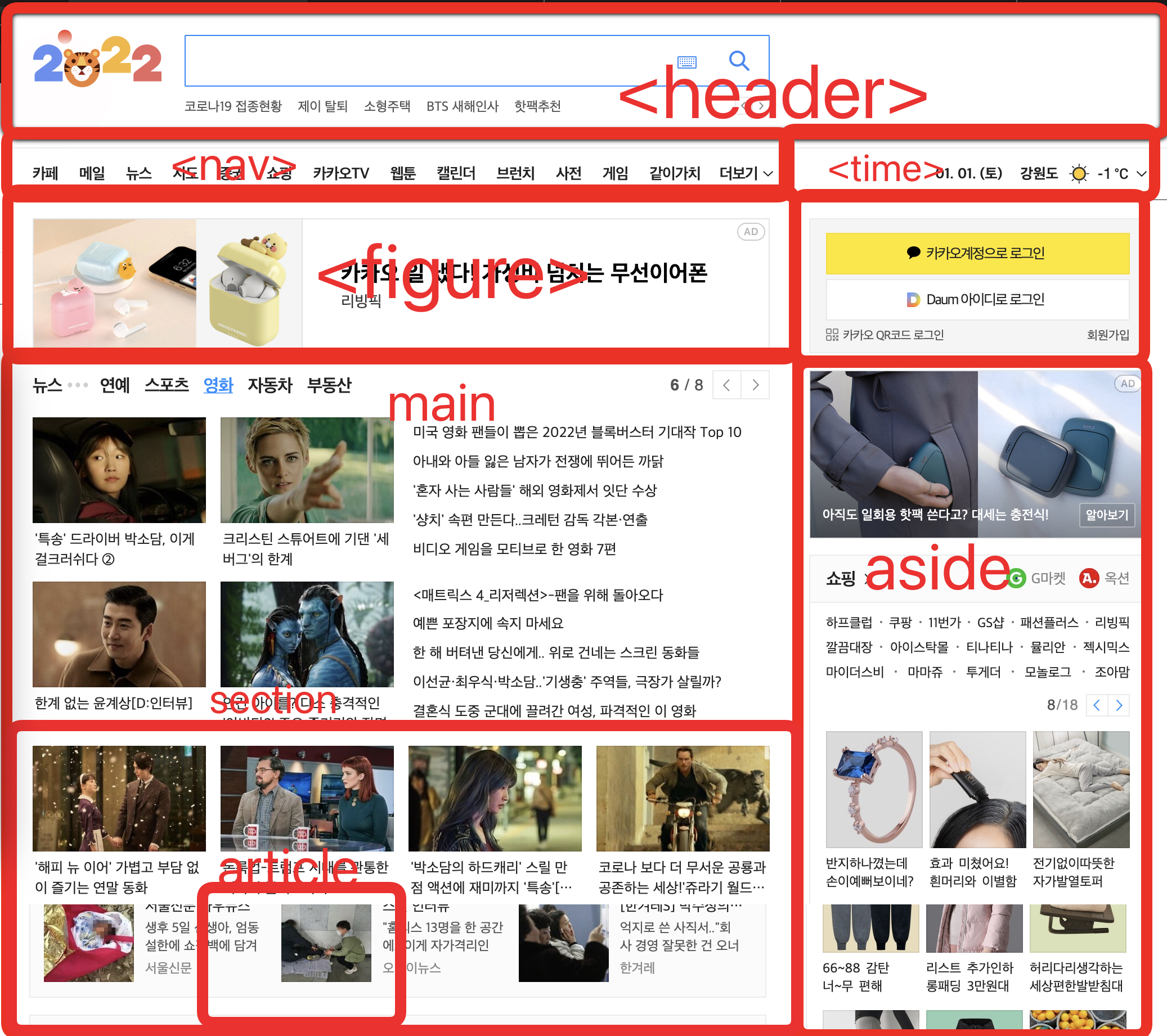 ** 주의 : 단순 이해를 돕기 위해 임의로 지정한 태그일 뿐 시맨틱 태그를 어떻게 사용할 것인지 정해진 것은 없습니다.