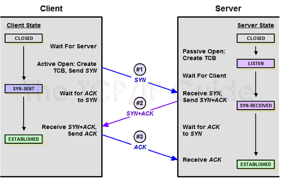 서버가 먼저 소켓을 열어놓은 상태로 대기하고 있다가 클라이언트가 연결을 요청한다고 SYN을 보내면 서버에서는 연결할 수 있는 소켓을 생성한 뒤 클라이언트에게 SYN와 ACK를 보낸다. 그러면 클라이언트는 다시 한 번 ACK를 보냄으로써 정상적으로 응답 받았다는 사실을 서버에게 다시 전달한다. (TCP는 항상! 확인 응답을 거친다)