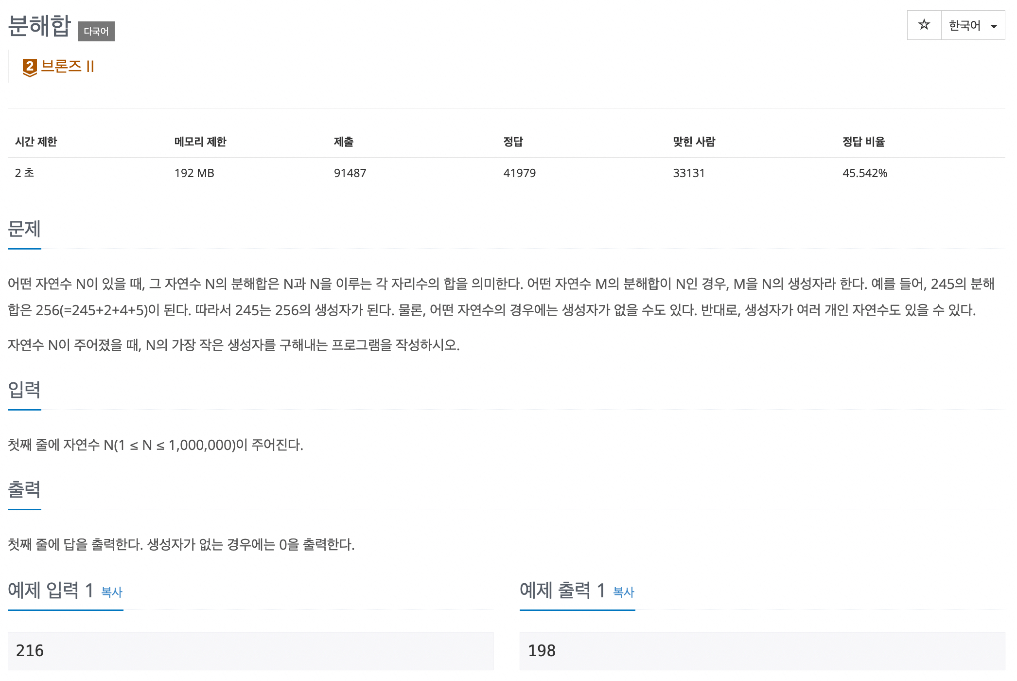 친절하게 분해합이 무엇이고 어떻게 구하는지 알려주고 있다.