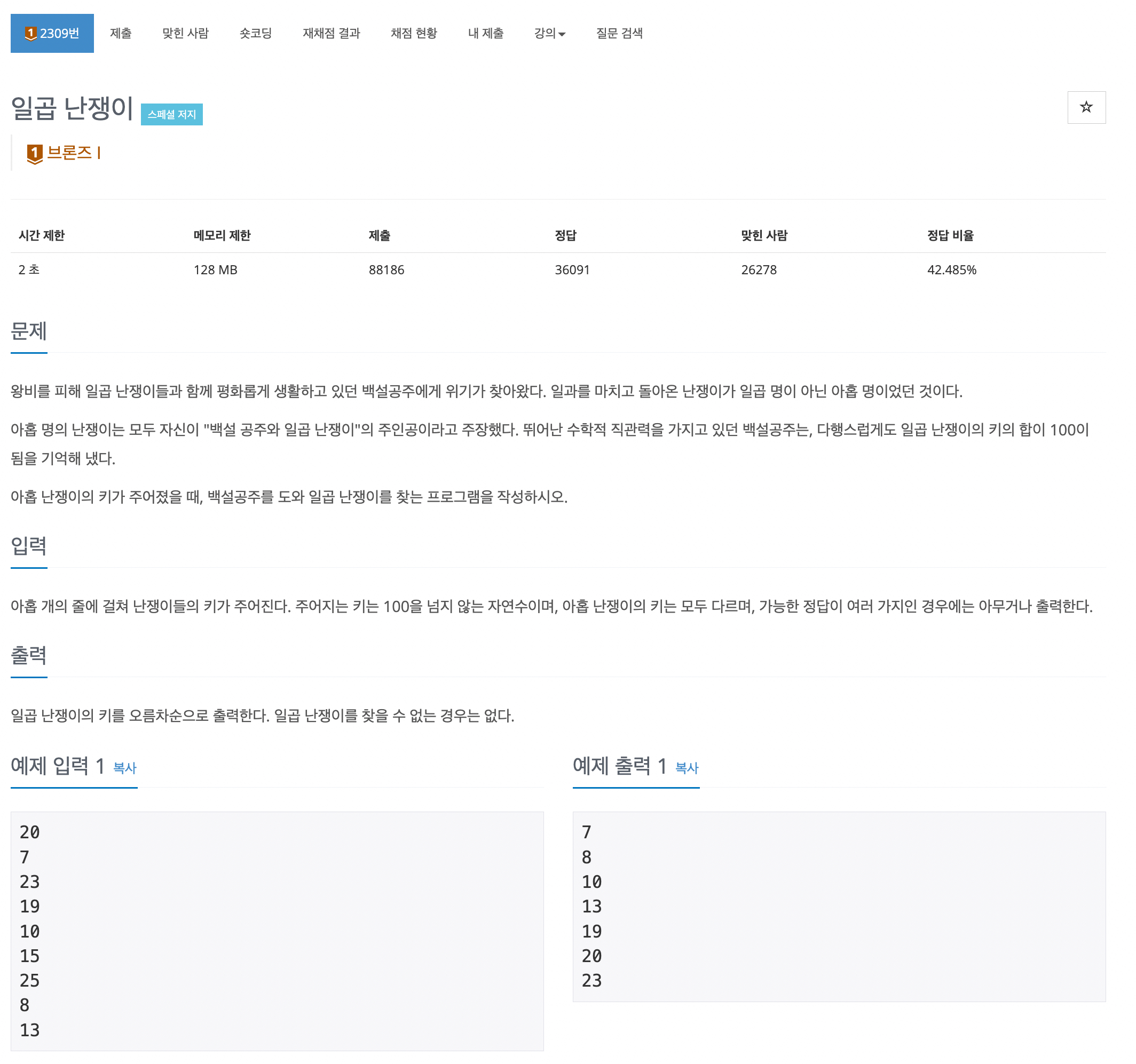 가짜 난쟁이를 찾아내는 문제인데 <스페셜 저지>라는 문구가 눈에 띈다.