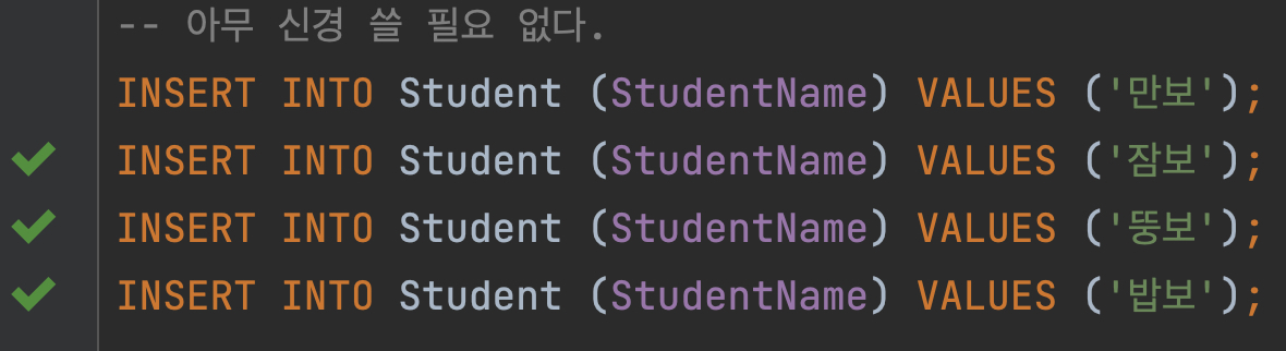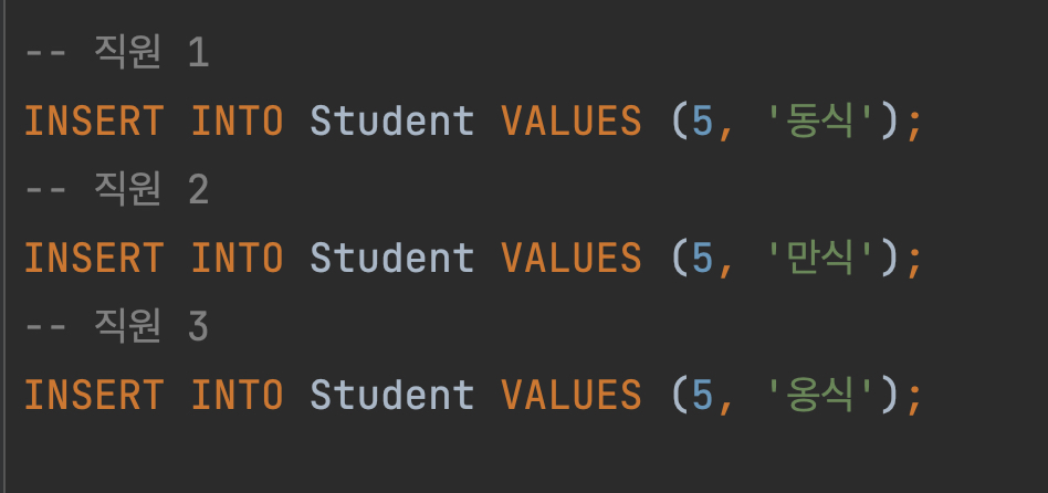 도저히 학생 id가 중간중간 구멍나는 것을 참을 수 없다는 이유로 수동으로 id를 부여하고 있다고 생각해보자.