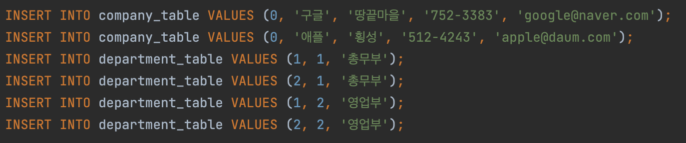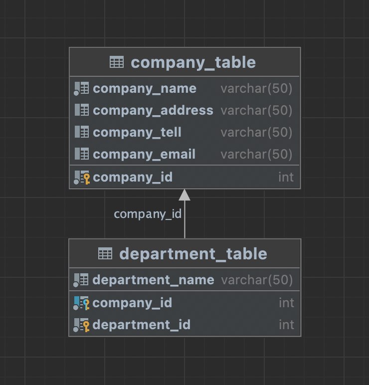 여러 회사와 각 부서가 중복될 수 있기 때문에 자식 테이블은 부서ID와 회사ID를 모두 기본키로 지정하여야 한다.