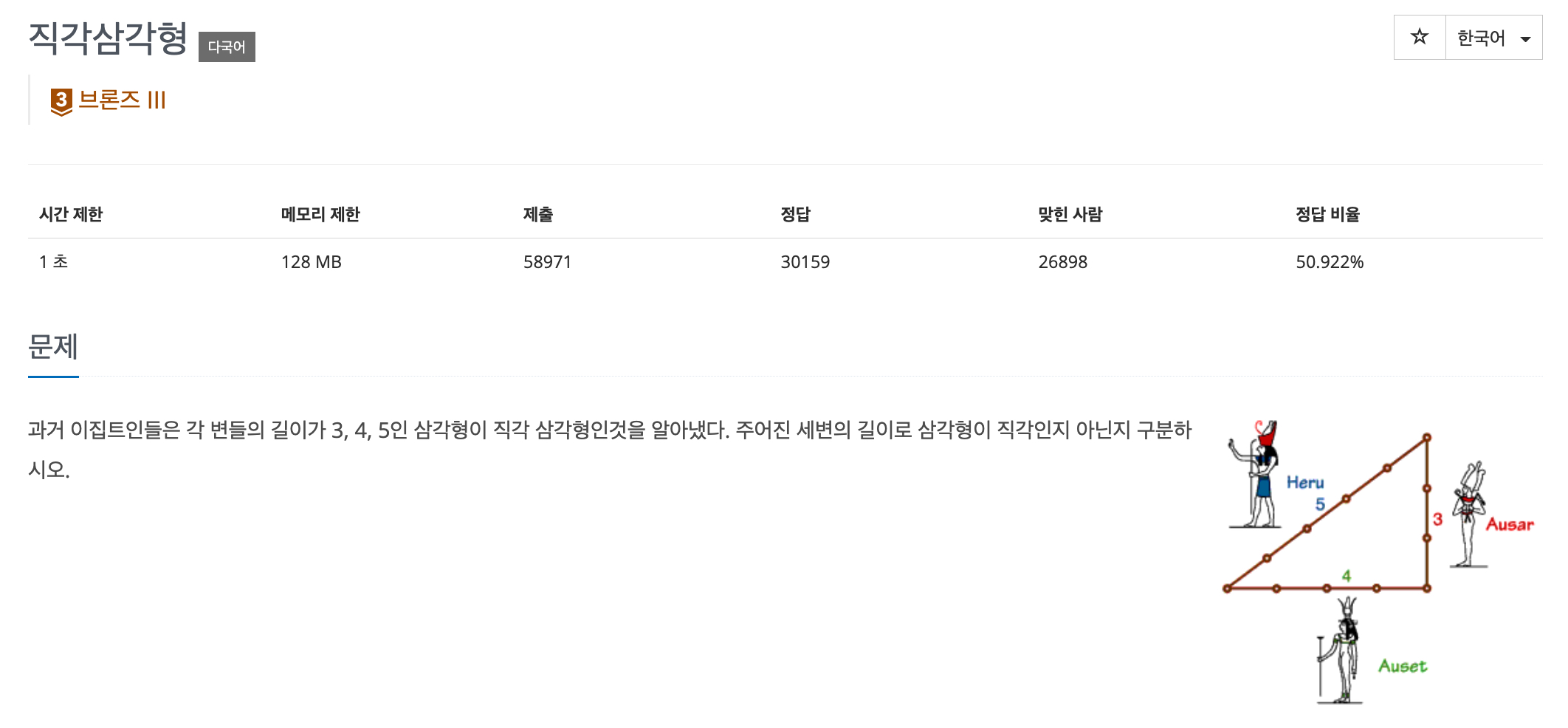 피타고라스의 정리 : 직각삼각형에서 빗변 길이의 제곱은 다른 두 변 길이의 제곱의 합과 같다.