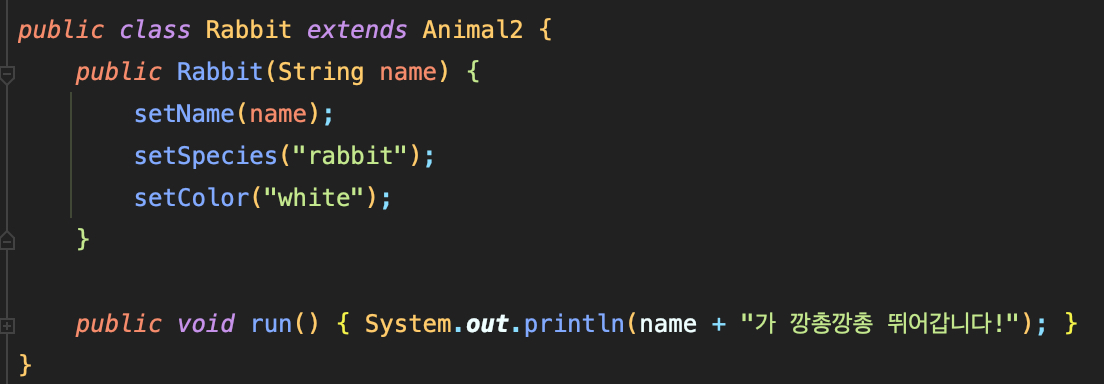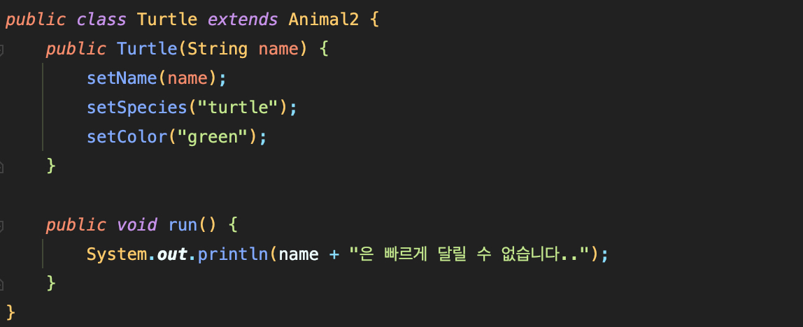 4. 이제 공통된 필드와 다른 메서드, 상태를 가진 Rabbit, Turtle 클래스가 만들어졌다.