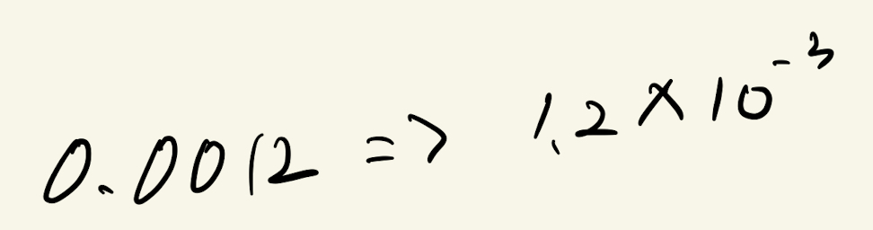 과학적 표기법(scientific notation)이 적용된 방법으로써, 10진 소수점이 왼쪽 한 자리 뿐인 소수(가수)에 10을 몇 번씩 곱하는지(지수)로 소수를 표현한다.