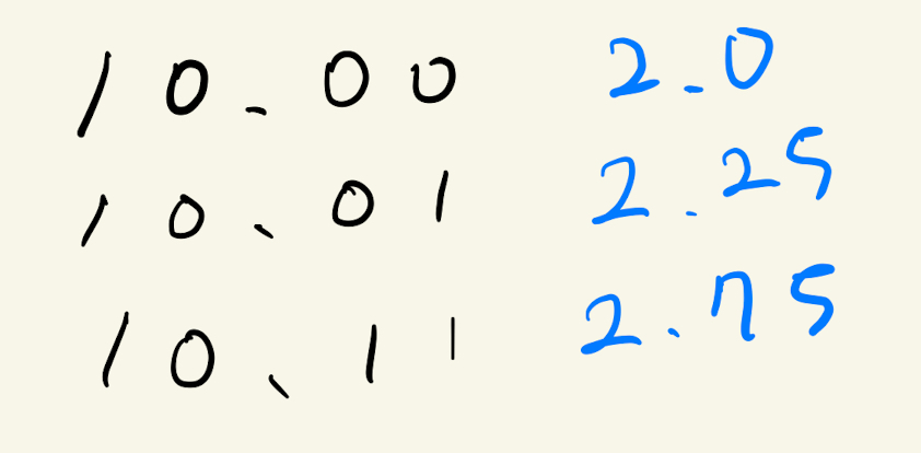 소수의 위치가 항상 일정하기 때문에 고정 소수점(fixedpoint)표현법이라고 부른다.