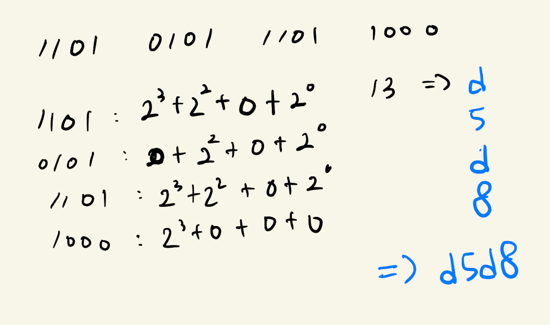 지금까지는 2가 밑, 10이 밑, 8이 밑이였는데 이제는 16이 밑이다.