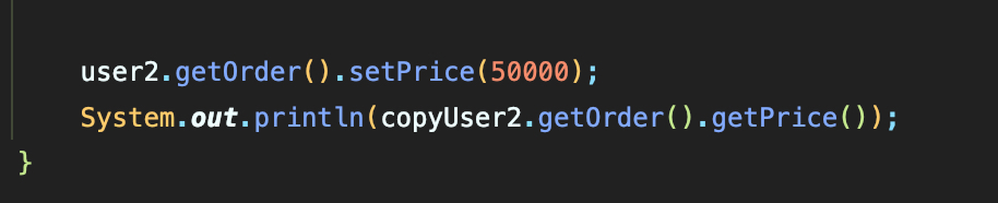 System.out.println(copyUser3.getOrder().getPrice()); // 50000