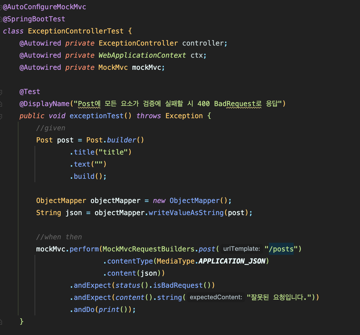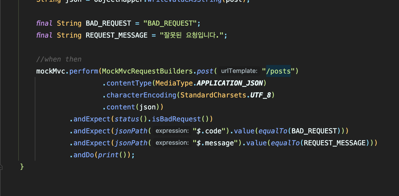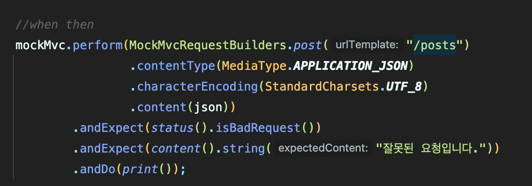 이렇게 아기 MockMvc에게 UTF-8을 인코딩할 수 있도록 알려주고 다시 실행해보자
