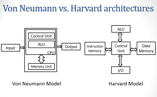 - CPU 성능이 기억 장치(메모리)의 속도에 비해 크게 향상하게 되며 CPU가 Memory를 기다리는 "폰 노이만 병목 현상"이 생김에 따라 데이터 메모리용 버스와 명령어 메모리용 버스를 분리해서 사용하게 되었고, 이것을 하버드 구조라고 한다.