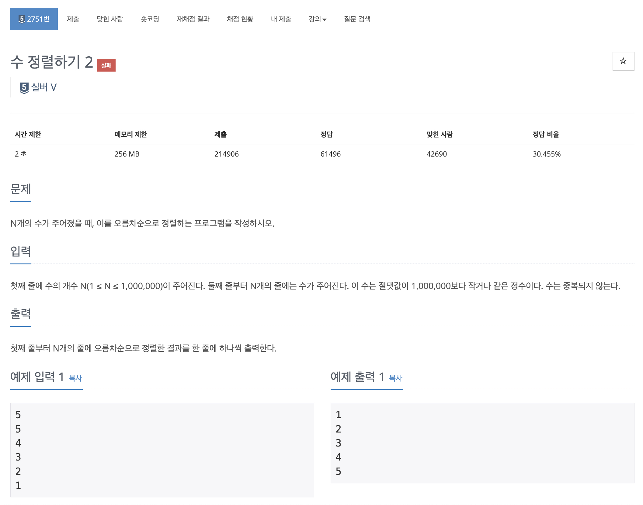 그냥 원하는 정렬 알고리즘 아무거나 연습하기 좋은 수 정렬하기 문제다.