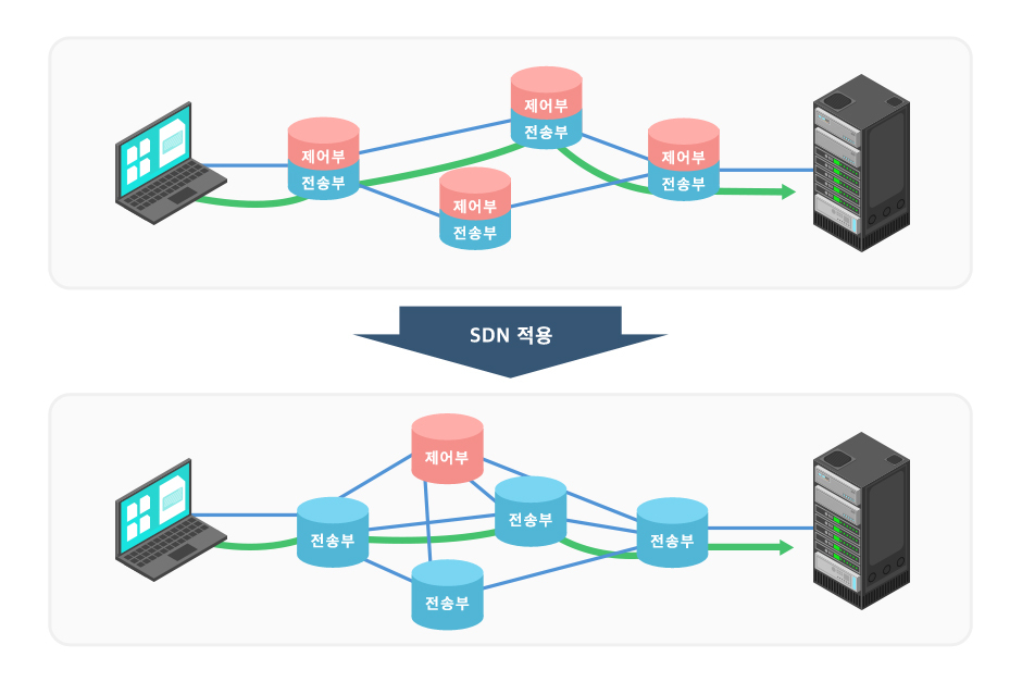 소프트웨어에 의해 관리 및 제어되는 가상적 네트워크, 또는 이를 구성하기 위한 기술을 의미한다.
