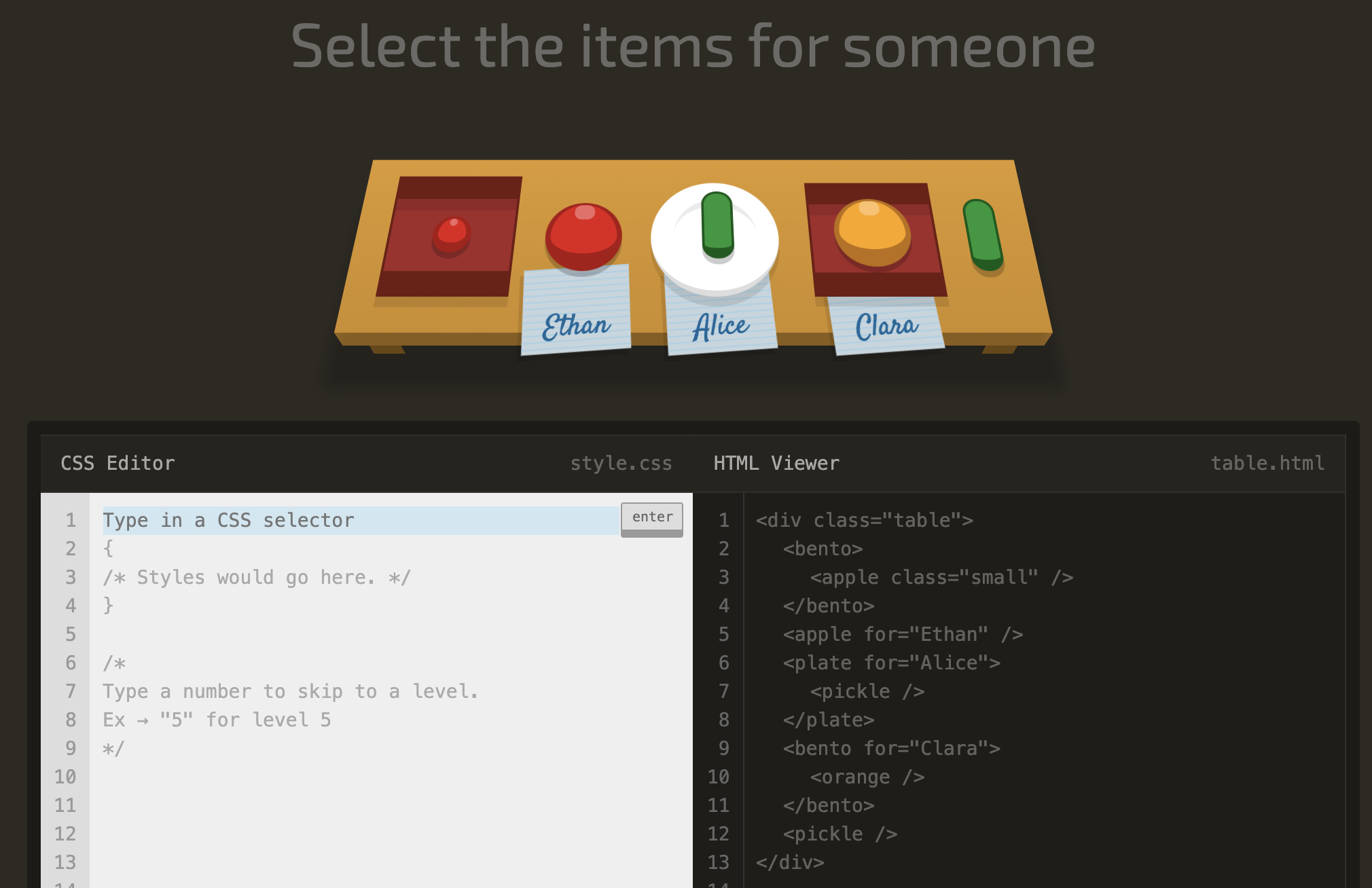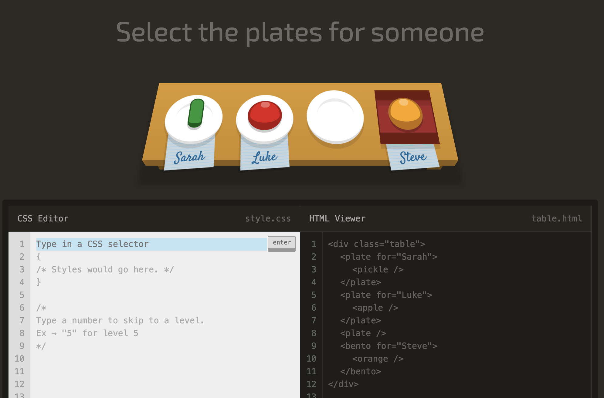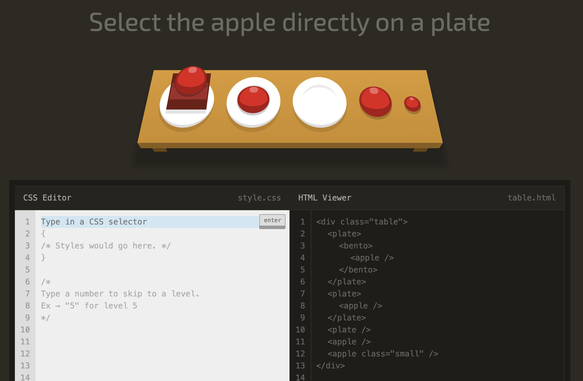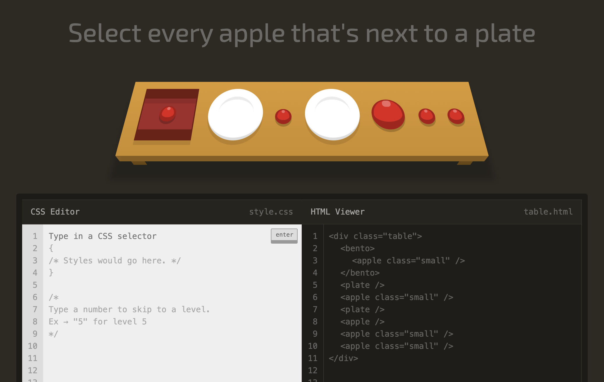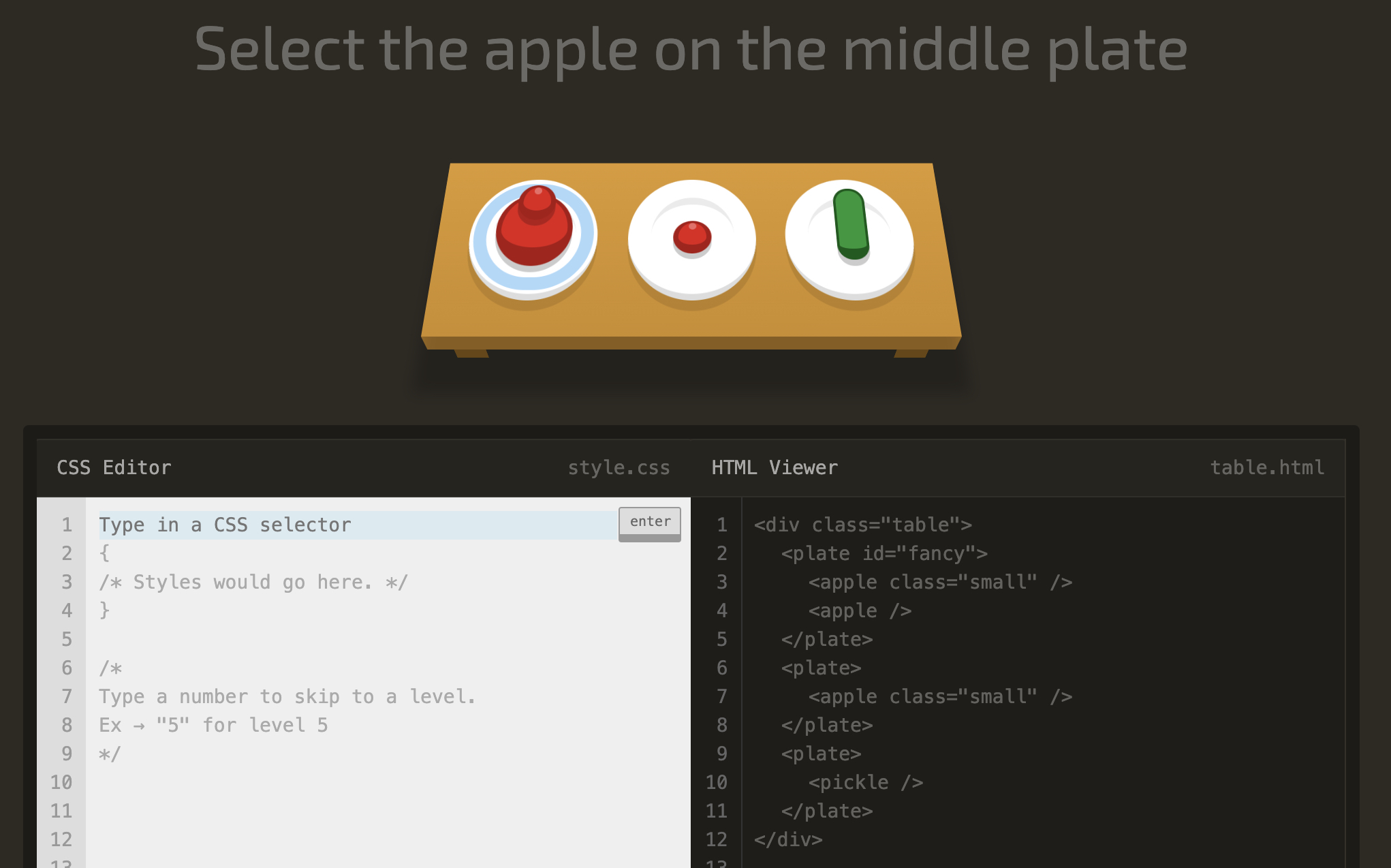 level 12 Select every apple that's next to a plate