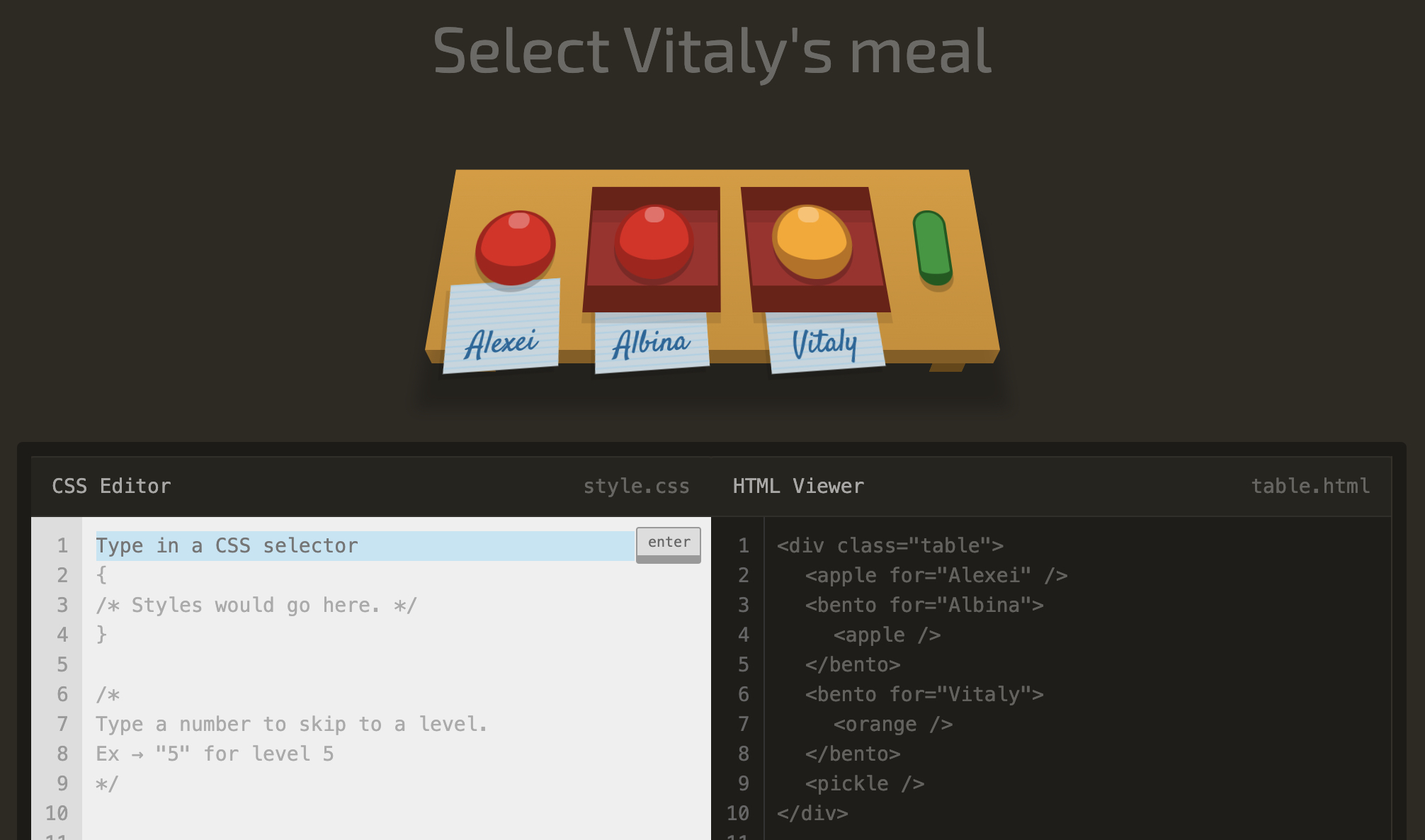 level 29 Select Vitaly's meal