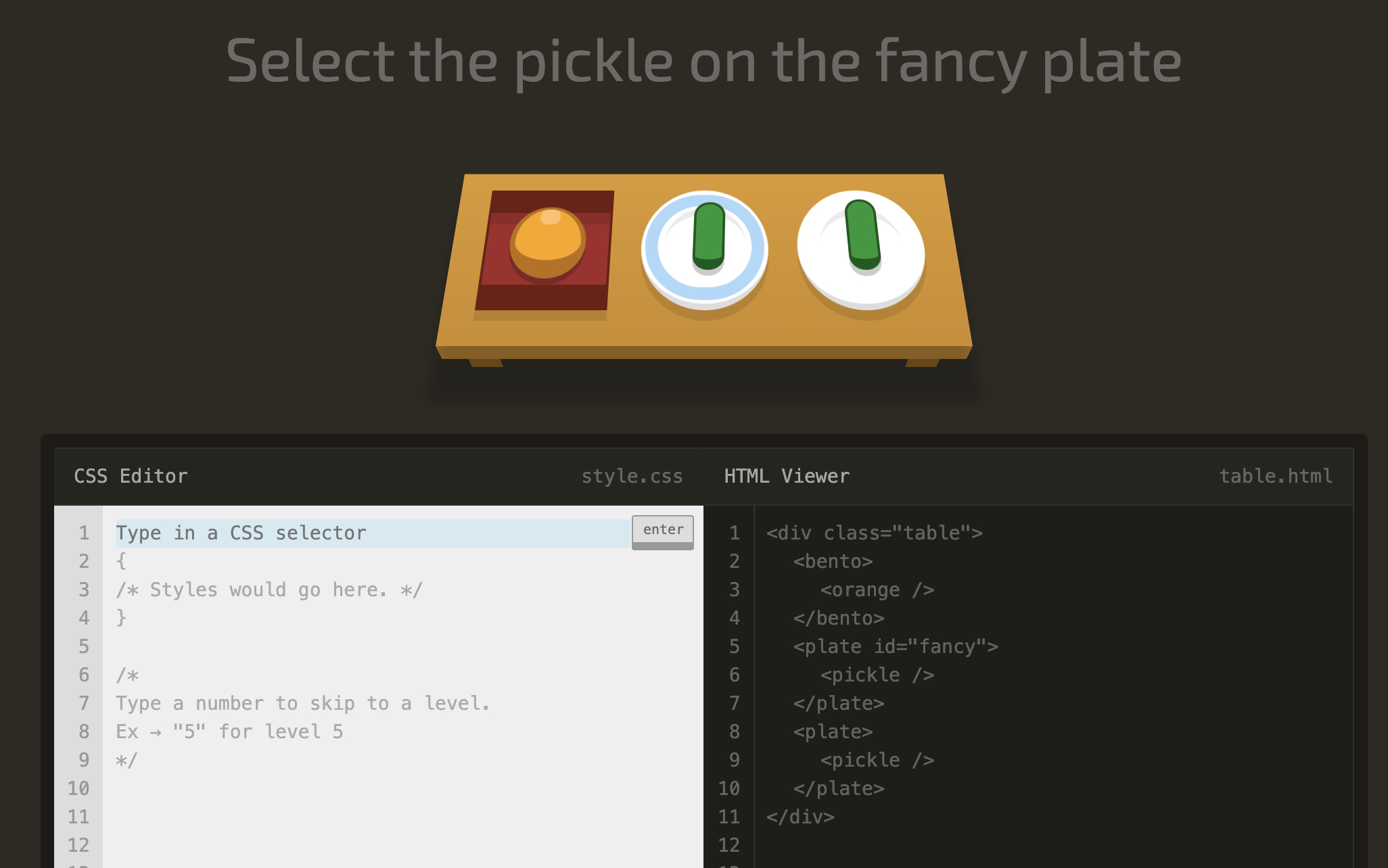 level 5 Select the pickle on the fancy plate