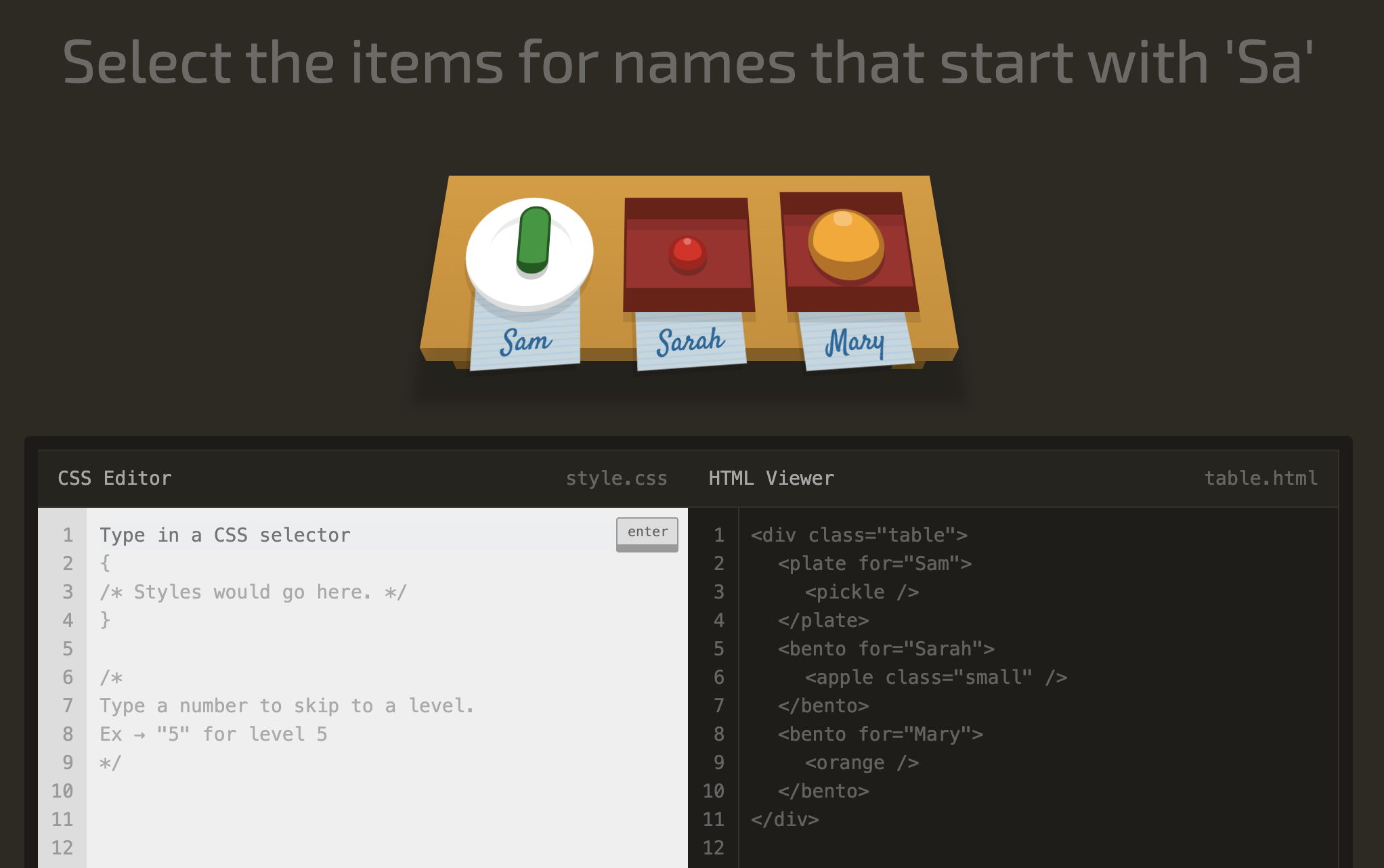 level 30 Select the items for names that start with 'Sa'