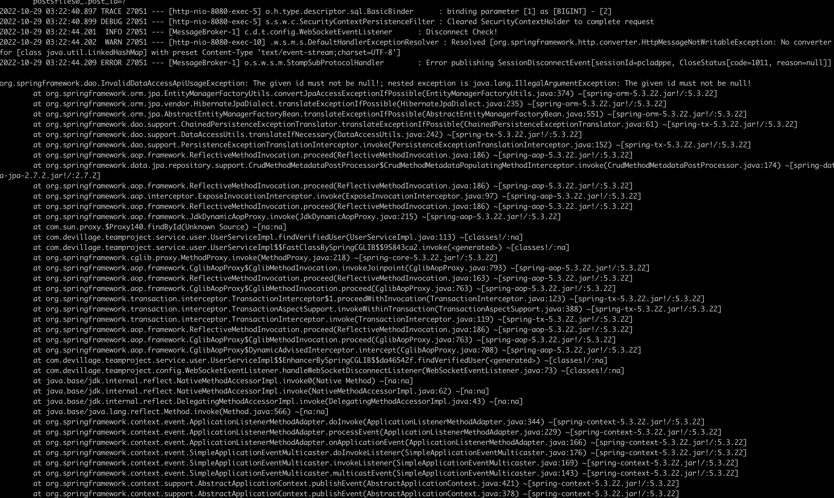 at com.devillage.teamproject.config.WebSocketEventListener.handleWebSocketDisconnectListener(WebSocketEventListener.java:73) ~[classes!/:na]