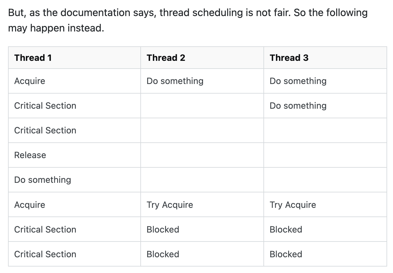 이를 확인하려 다양한 테스트 코드를 작성해보고 구글링도 해봤지만 어떻게 작성해야 unfairness한 상황과 fairness한 상황을 내 눈으로 직접 확인할 수 있는지 찾을 수 없었다.