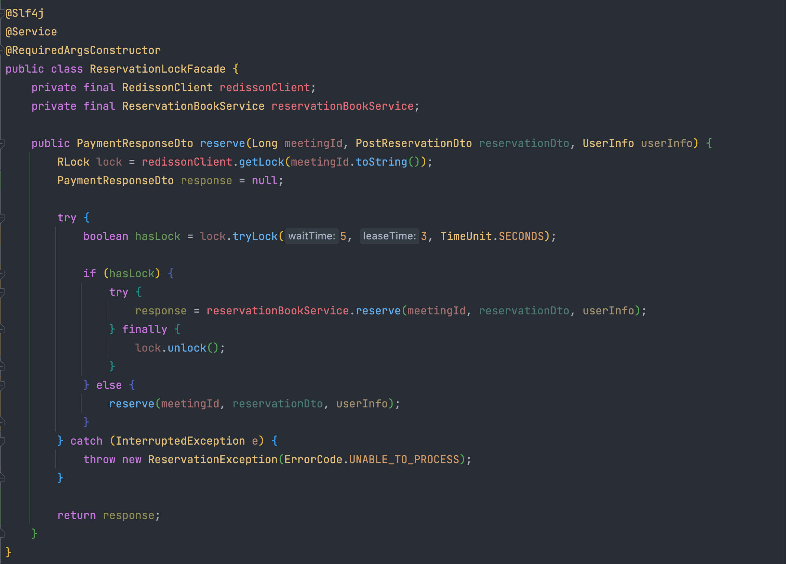 데드락을 막고 싶다면 대기 후에도 락 획득 실패 시 그냥 요청을 실패시키는 쪽이 더 안전할 것이다.
