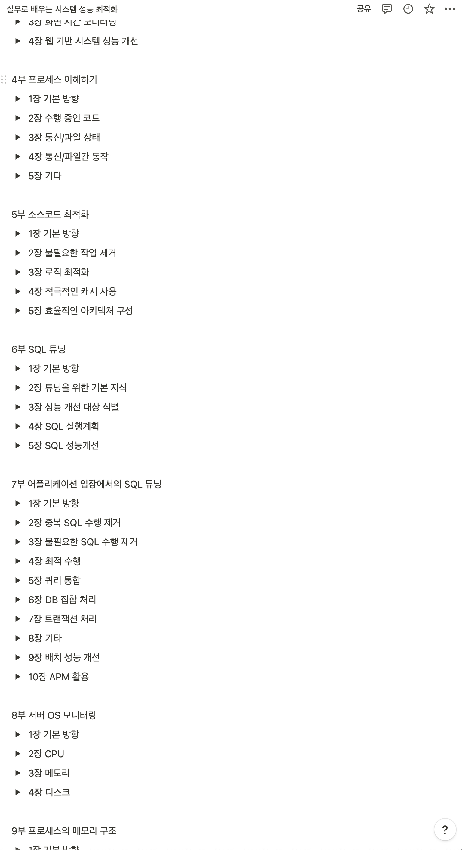 취업 전까지는 아키텍처나 방법론 같은 것들에 관심이 많았다면 실무에 찌들고 있는 지금은 당장 눈 앞의 성능 개선이 더 중요하기 때문에 이런 책들에 더 많은 관심을 가지게 되었다..