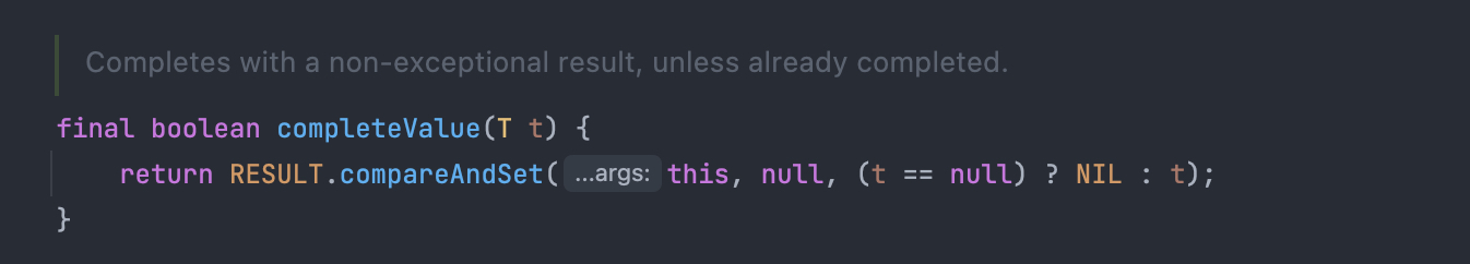 completeValue()는 compareAndSet 알고리즘을 이용해 결과값을 구하는 것 같은데, 이 부분은 잘 이해가 안된다..