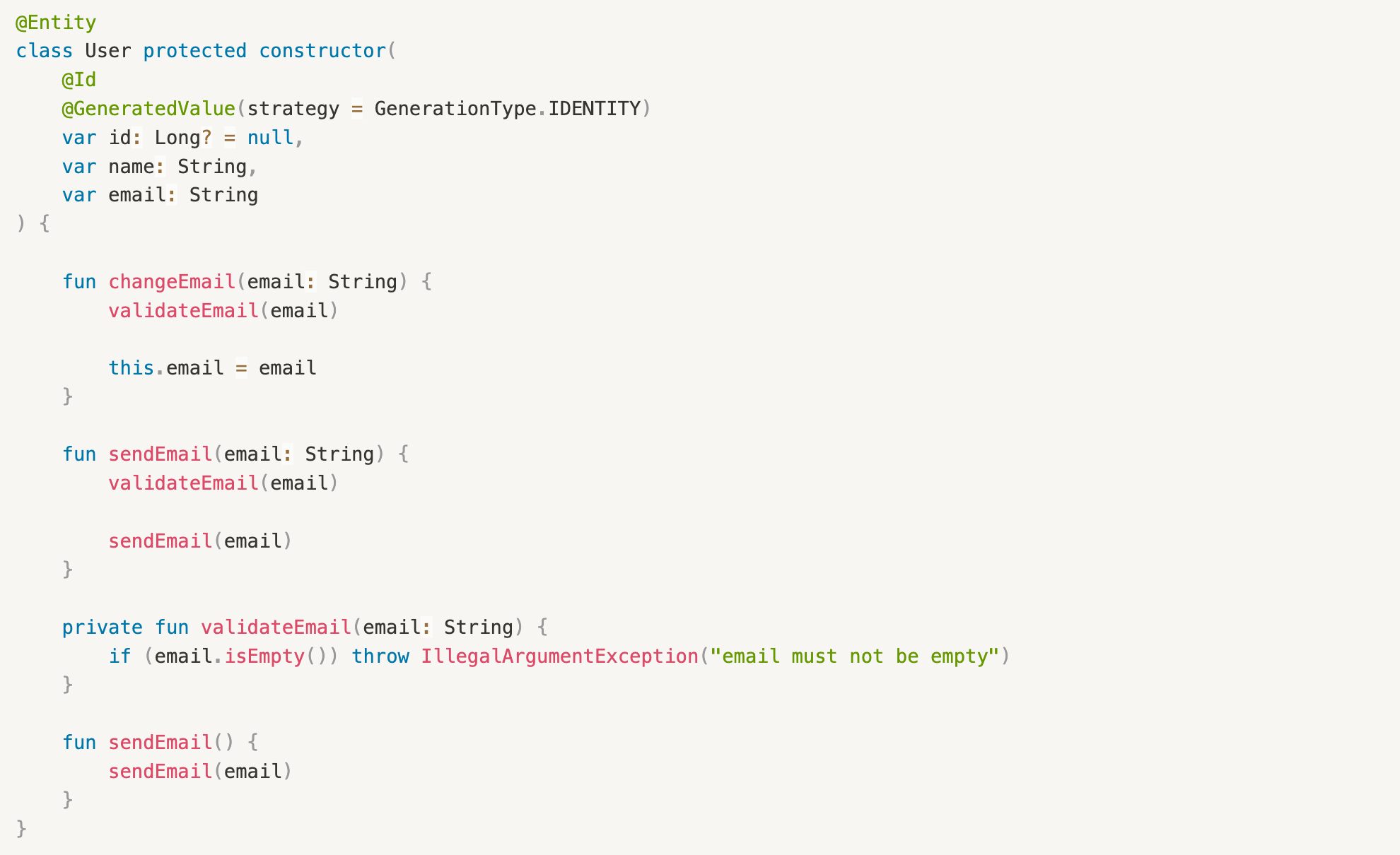 여기에서 email을 별도의 Email 객체로 분리하면 속성을 불변으로 사용할 수 있다.