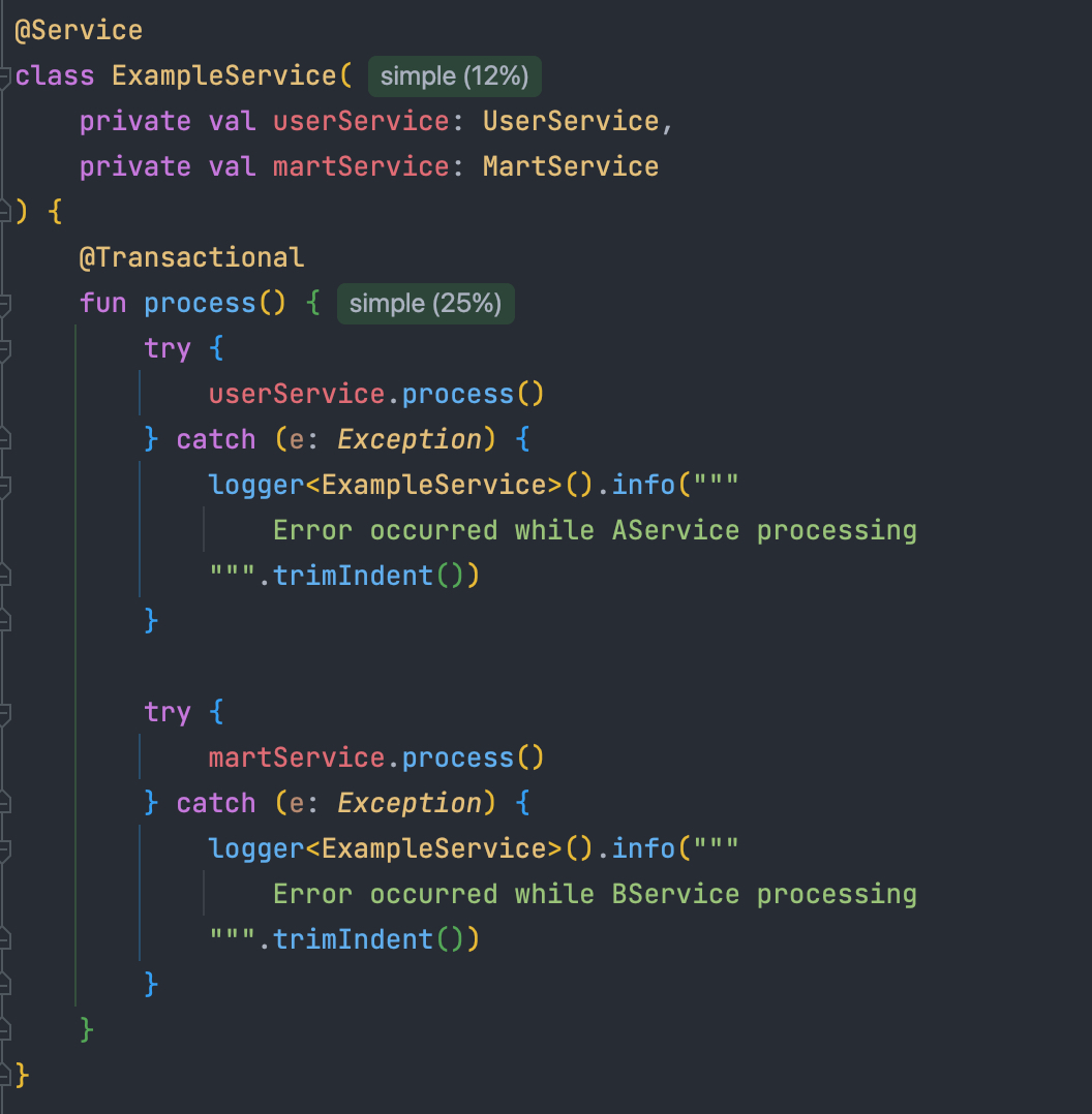 각 서비스 중 하나가 실패하더라도 나머지는 성공하기를 원하는 상황이다.