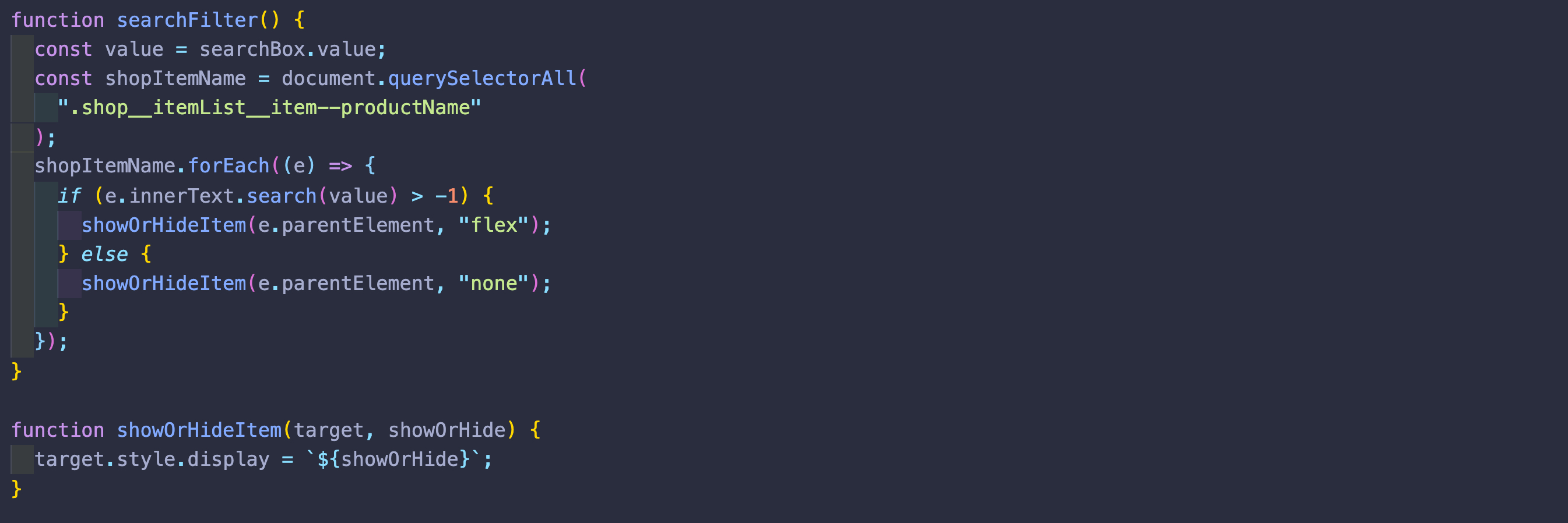 showOrHideItem 함수는 만들 때까지만 해도 겨우 이런 걸 함수로 만들어서 어디에 쓸까 싶어서 고민이 됐는데 끝까지 요긴하게 잘 사용했다.