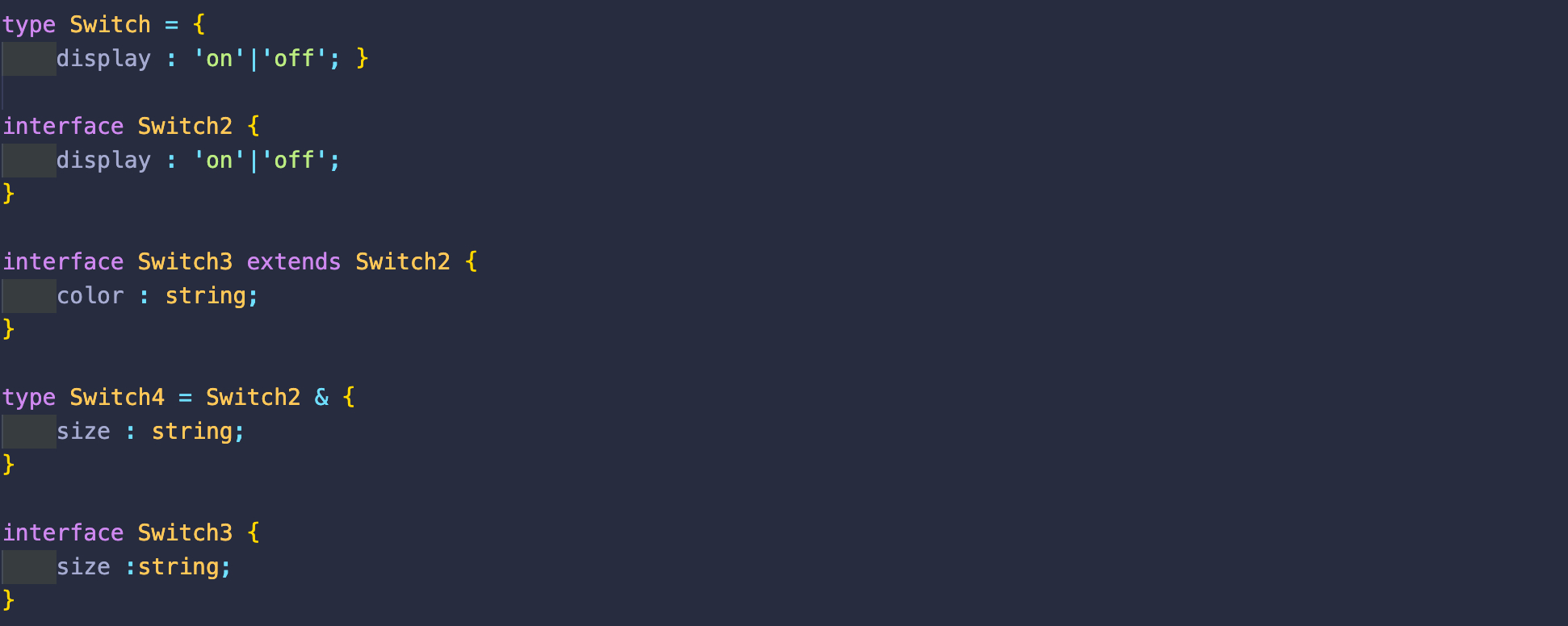 interface는 타입을 계속해서 재선언하면 자동으로 이들을 합쳐준다. type은 같은 이름의 타입을 재할당/재선언할 수 없다.