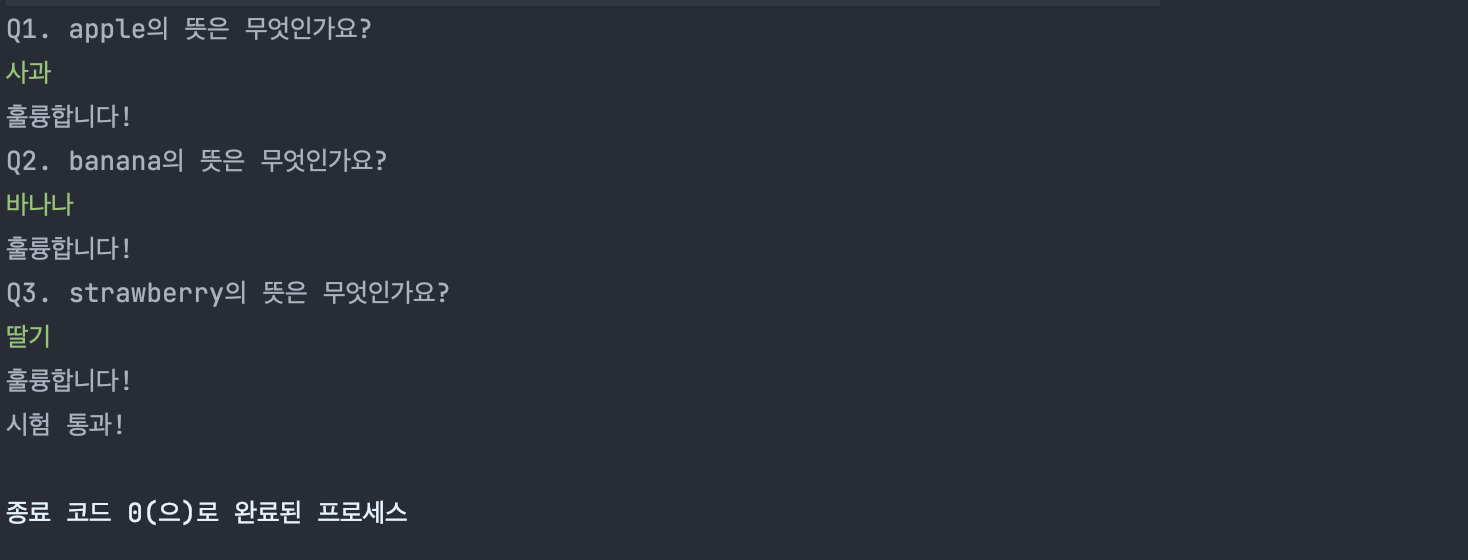System.out.println("시험 통과!");