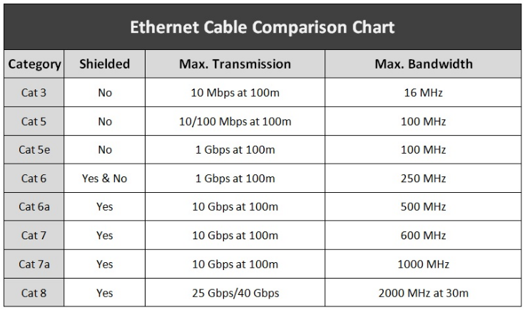 트위스트 페어 케이블의 경우 카테고리 개념이 있으며 제품에 표기된 6, 5e 등이 그것이다.